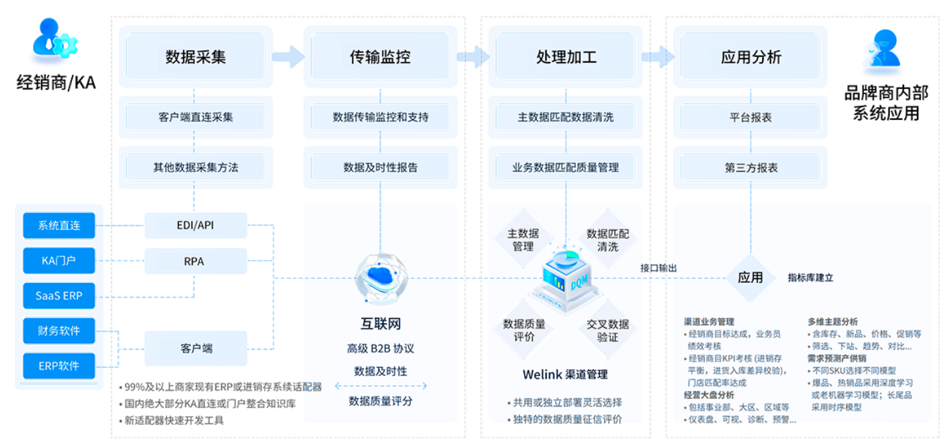 销售渠道协同是指企业间(B2B)采销和履约供应链中各成员(供应商、制造商、品牌商、物流商、经销商、分销商、零售商等)通过信息共享、资源整合与流程协同,共同优化整体运营效率的战略合作模式。其核心目标是通过数据驱动实现客户需求快速响应、渠道通路效能提升、供应链高效协同和资源精准配置。